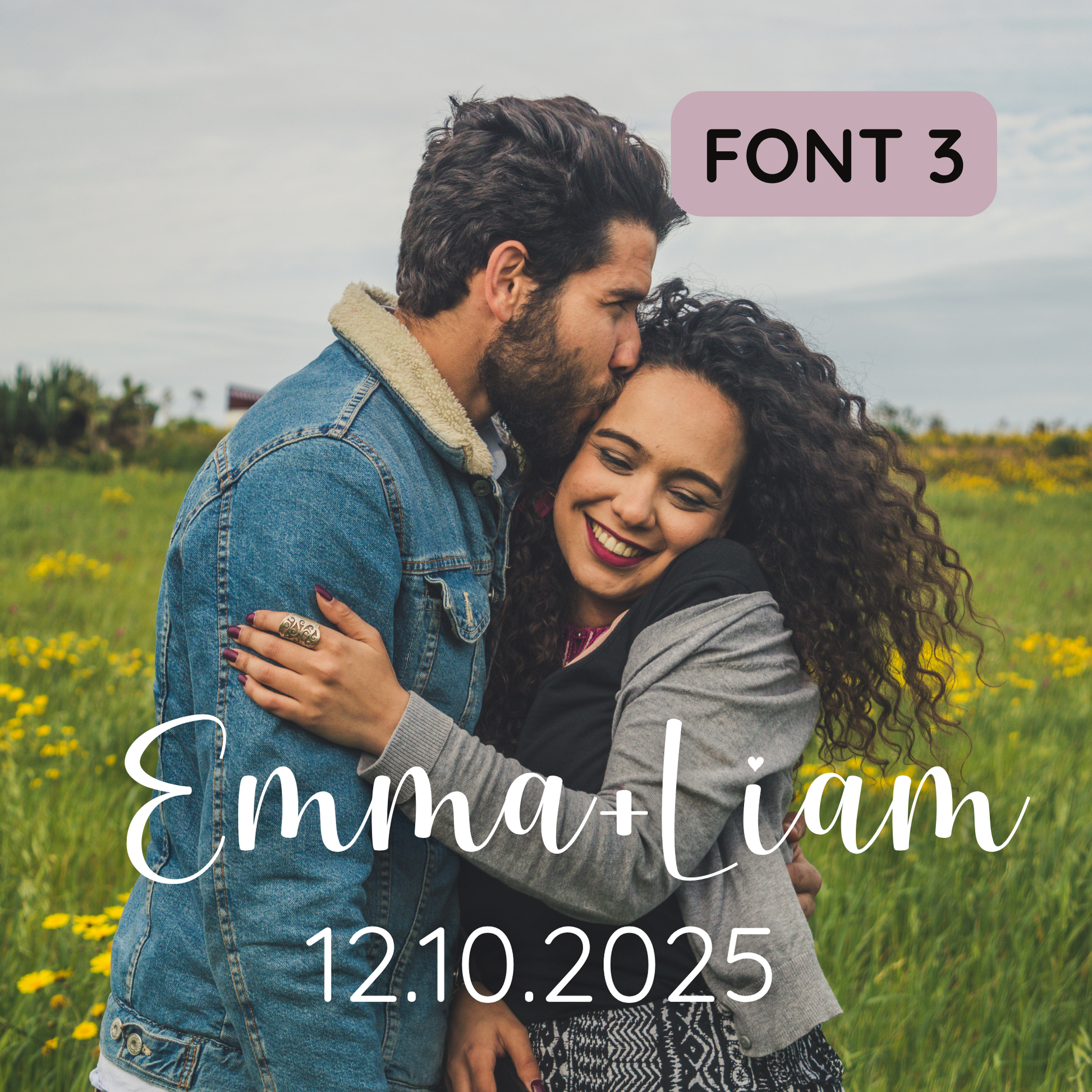 Personalization Upload your photo and add your own text - a name, place, quote and important date. You can also choose to include only text or only the date. Important! Please double-check your text for any errors – the text you provide will appear on the magnet exactly as entered. The text is available in four different fonts, allowing you to match the lettering style to the character of your photo. The date always uses the same simple font - exactly as shown in the examples.