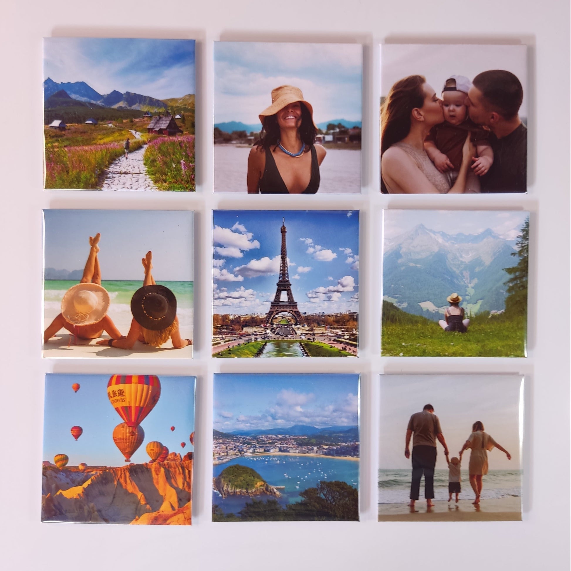 Personalize your space with a unique set of 9 square fridge magnets - featuring your own photos!
